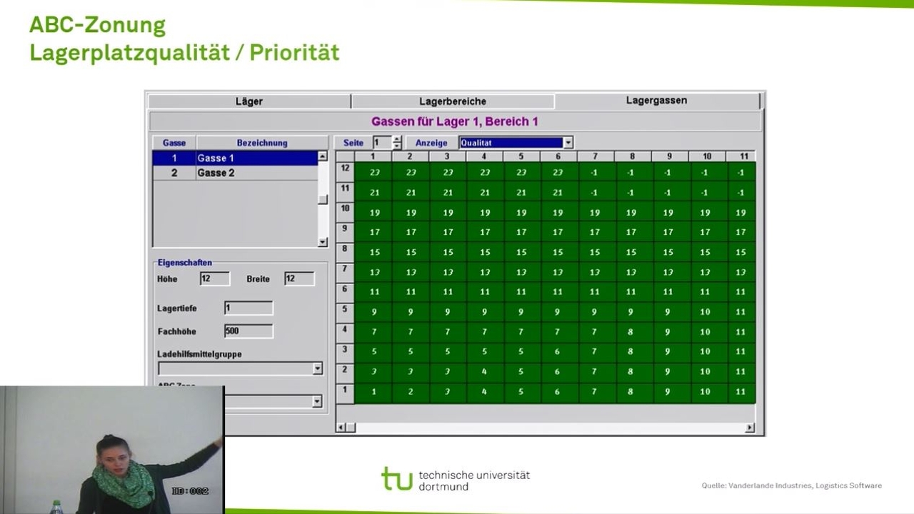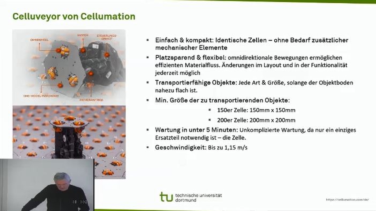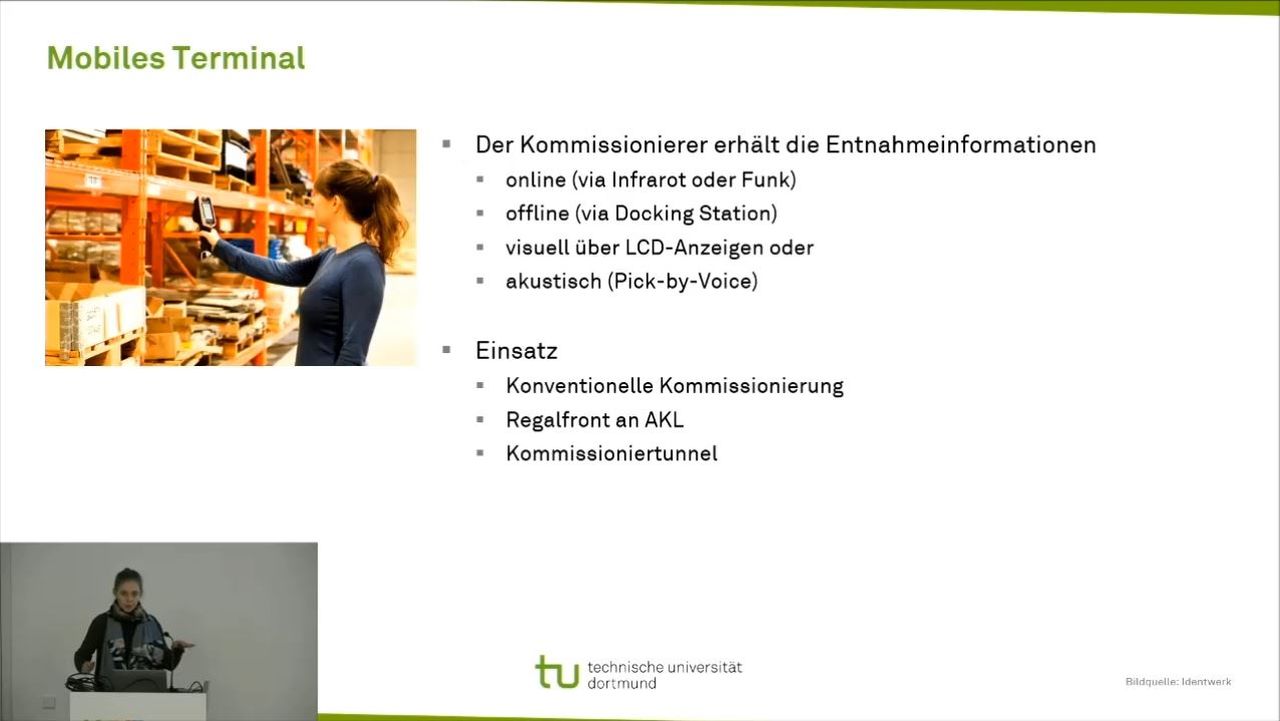 Die Vorlesung vermittelt die grundlegenden Definitionen und Ziele von Materialflusssystemen, beschreibt den Einsatz von Verpackungen, Lagertechniken und Organisation. Ein weiteres Thema ist die Fördertechnik sowie Kommissionierung, Planung und Materialflussrechnung.